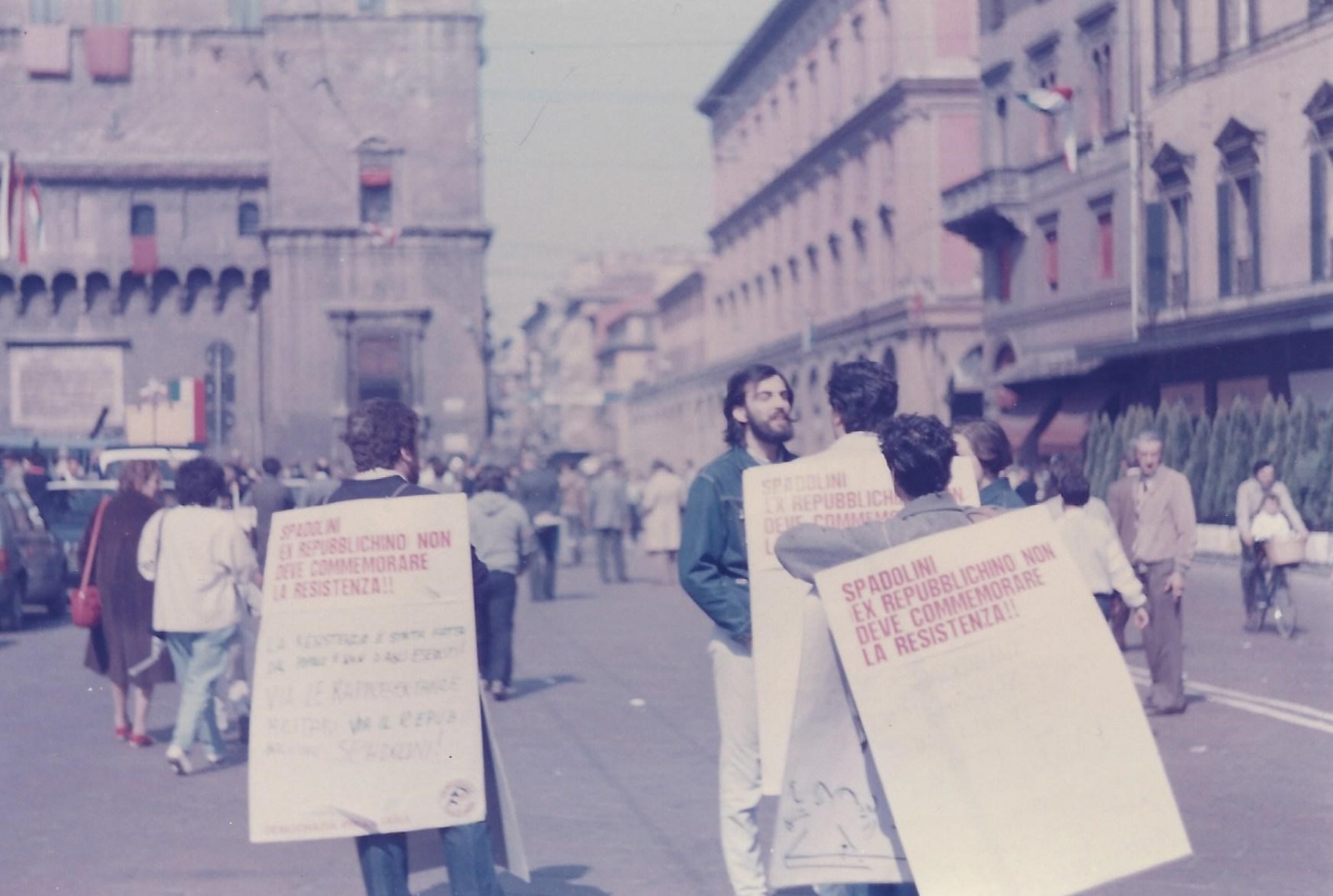 Bologna, piazza Nettuno, 23 aprile 1985, protesta contro Spadolini |