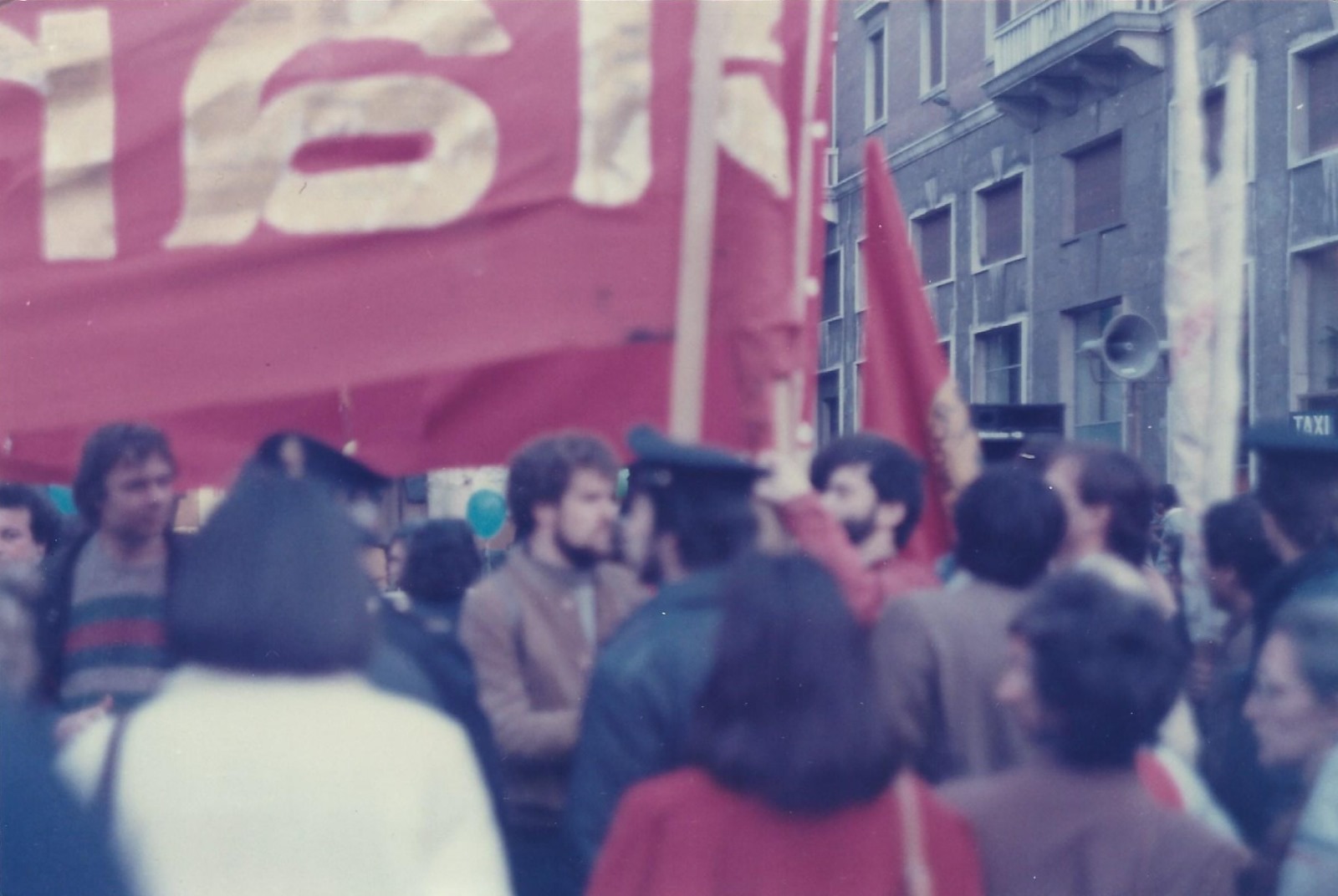 Roma, 24 marzo 1984, militanti di Dp di Bologna alla manifestazione contro il taglio della scala mobile. Si nota Pier Giorgio Nasi |