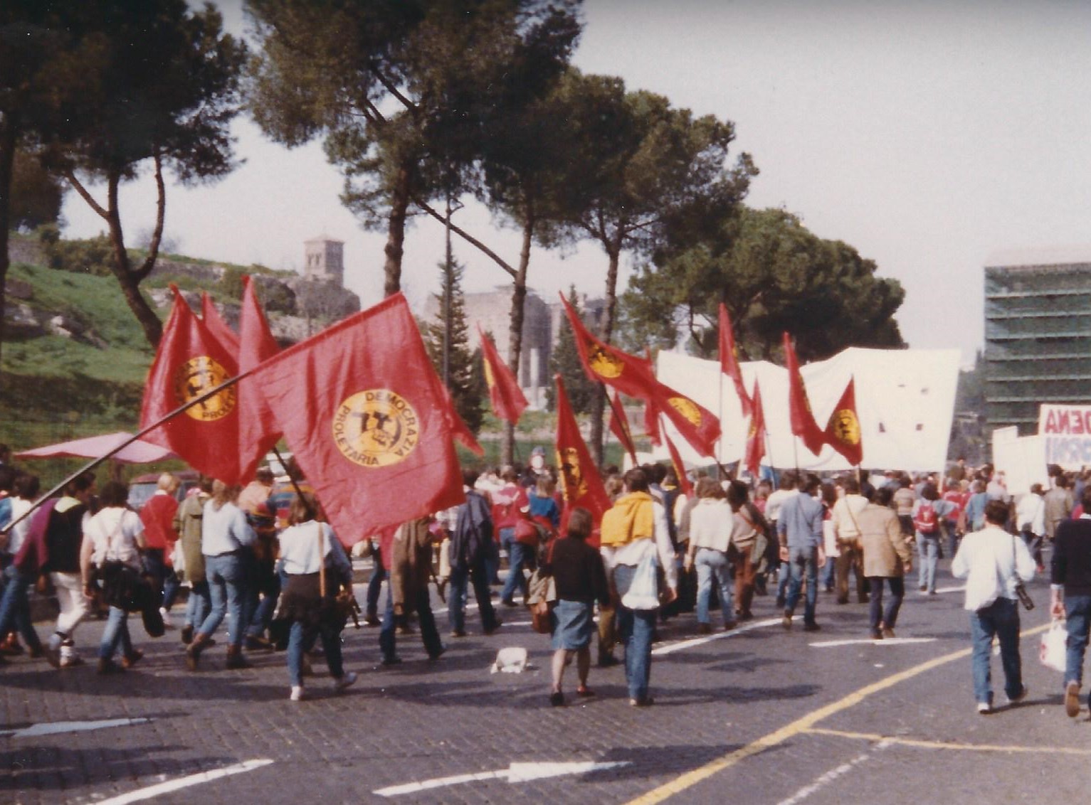 Roma, 24 marzo 1984, manifestazione contro il taglio della scala mobile. |