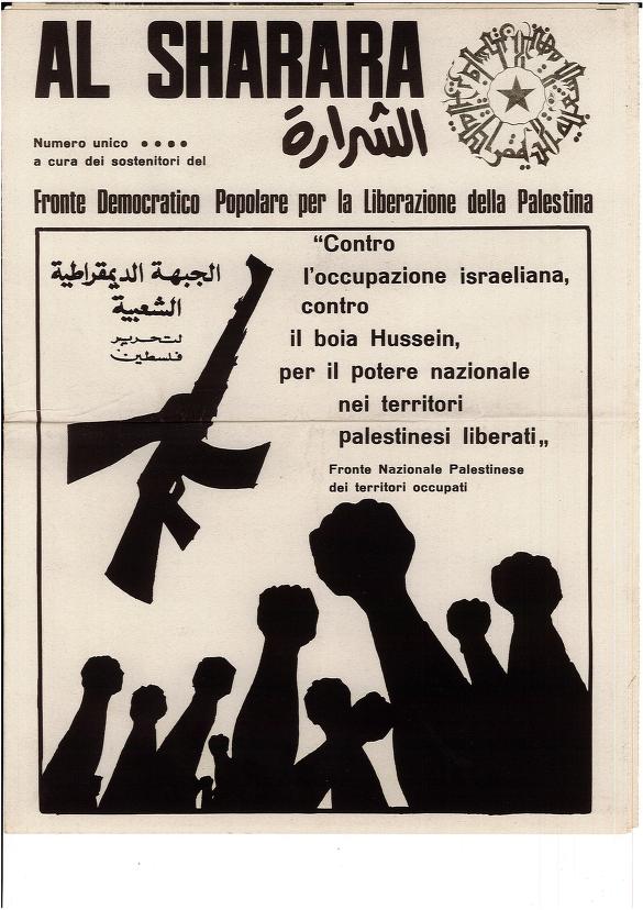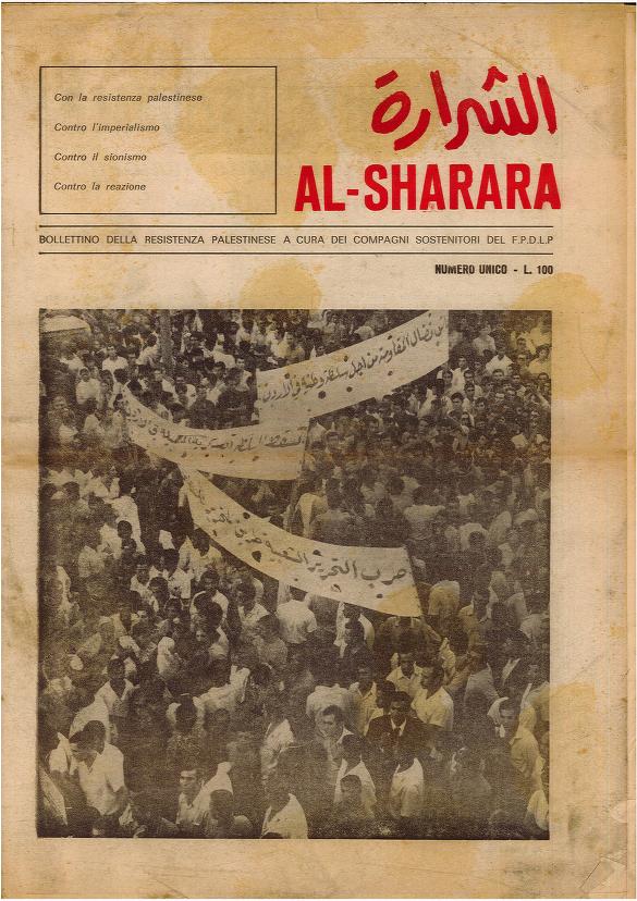 "Al Sharara" è stata un periodico pubblicato nella prima metà degli anni 70 a cura dei sostenitori del Fronte popolare democratico per la liberazione della Palestina.