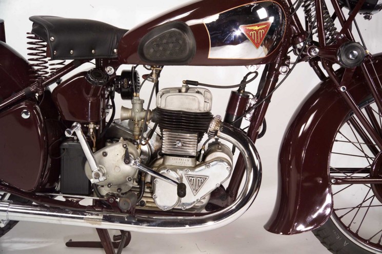 Quasi al sommo della perfezione, raggiunta con i parafanghi di nuovo disegno, il felice accostamento di parti verniciate e parti cromate, il montaggio in serie e non su richiesta della sospensione posteriore. Ecco la M.M. che non tradirà mai.