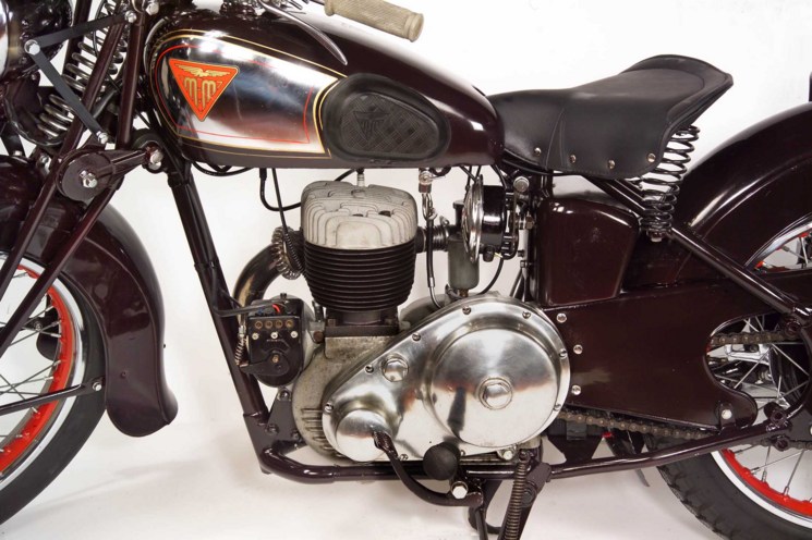 La vera ammiraglia della flotta turistica M.M. con tutte le modifiche e innovazioni suggerite da lunghi anni di esperienza. Impareggiabile per robustezza e comodità, ideale per il side-car, può competere con altre moto rivali dotate di motori a valvole in testa.