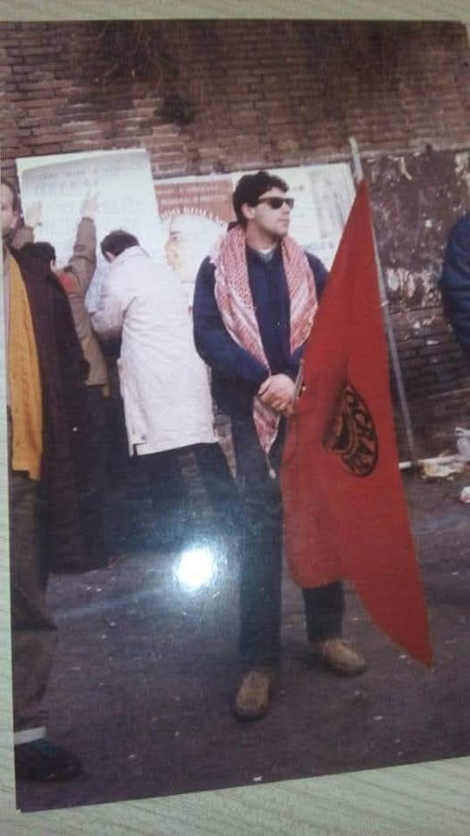 Militanti di Dp in corteo. Si nota Giovanni Russo Spena |