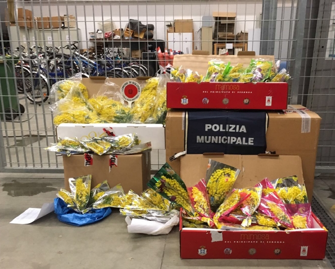 8 marzo, commercio abusivo di mimose: i vigili sequestrano quasi mille mazzi