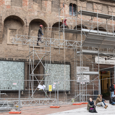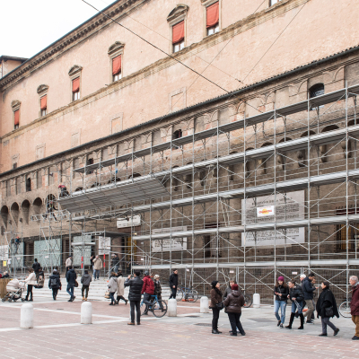 Al via i lavori per riqualificare la facciata di Salaborsa, il restauro di tutti i suoi elementi decorativi e il coperto delle Collezioni Comunali d'Arte. È iniziato il montaggio del ponteggio per i lavori sulla facciata di Salaborsa (piazza Nettuno) che porterà a un cantiere della durata di 12 mesi. La prima fase delle operazioni riguarda il rilievo e le analisi per la verifica dello stato della facciata in cotto dello storico palazzo e dello stato di conservazione delle parti in arenaria e di tutti gli elementi decorativi della facciata. Ottenuti i risultati delle indagini seguiranno le operazioni di restauro. Nel corso della primavera, e per tutta l'estate, il cantiere sarà interessato dai lavori di smontaggio dell'esistente coperto e consolidamento del sottotetto delle sale delle Collezioni Comunali d'Arte, per poi procedere con il rifacimento del coperto per renderlo adeguatamente impermeabilizzato e coibentato. Partiranno inoltre i rilievi e la messa in sicurezza dei coperti oltre alla sostituzione degli infissi delle finestre delle Collezioni Comunali d'Arte (sale dei Primitivi).