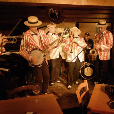 La Roaring Emily Jazz Band inaugura un Salotto che compie 18 anni con Swing! Un Salotto che compie 18 anni, un Salotto frizzante, un Salotto con voglia di divertirsi e di divertirsi non poteva che iniziare con una vera Marching Band in Stile New Orleans che scorrazza tra i tavoli in paglietta e bretelle rosse, con la grinta e il sorriso della miglior tradizione festaiola con la quale il jazz è nato ormai 100 anni fa.