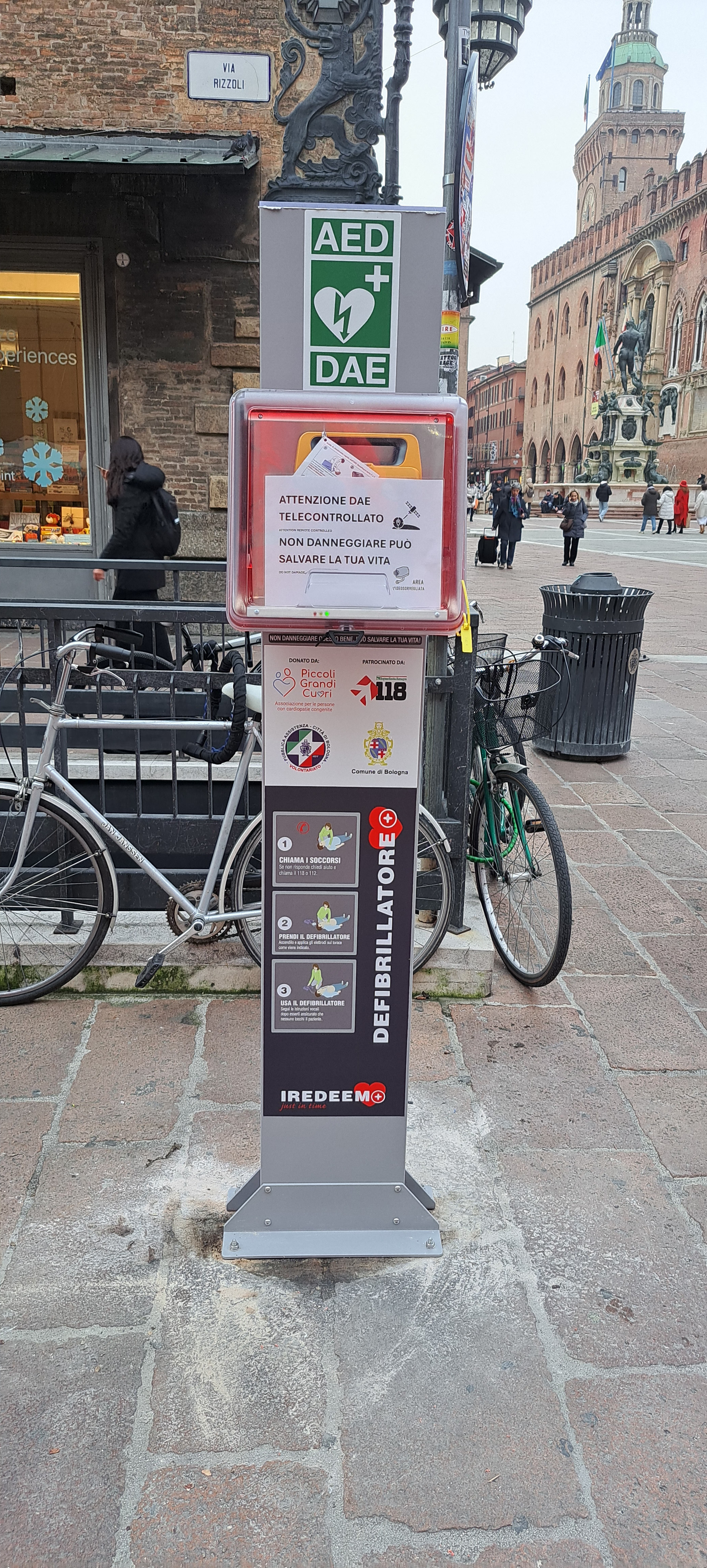 Sono stati installati nei giorni scorsi tre nuovi Defibrillatori Automatici Esterni (DAE) in centro. I tre dispositivi sostituiscono quelli già presenti, ma vandalizzati e resi inutilizzabili, in via Augusto Righi angolo via Indipendenza, via Rizzoli 1/D (di fronte a piazza Nettuno) e piazza Medaglie d’Oro di fronte alla Stazione.