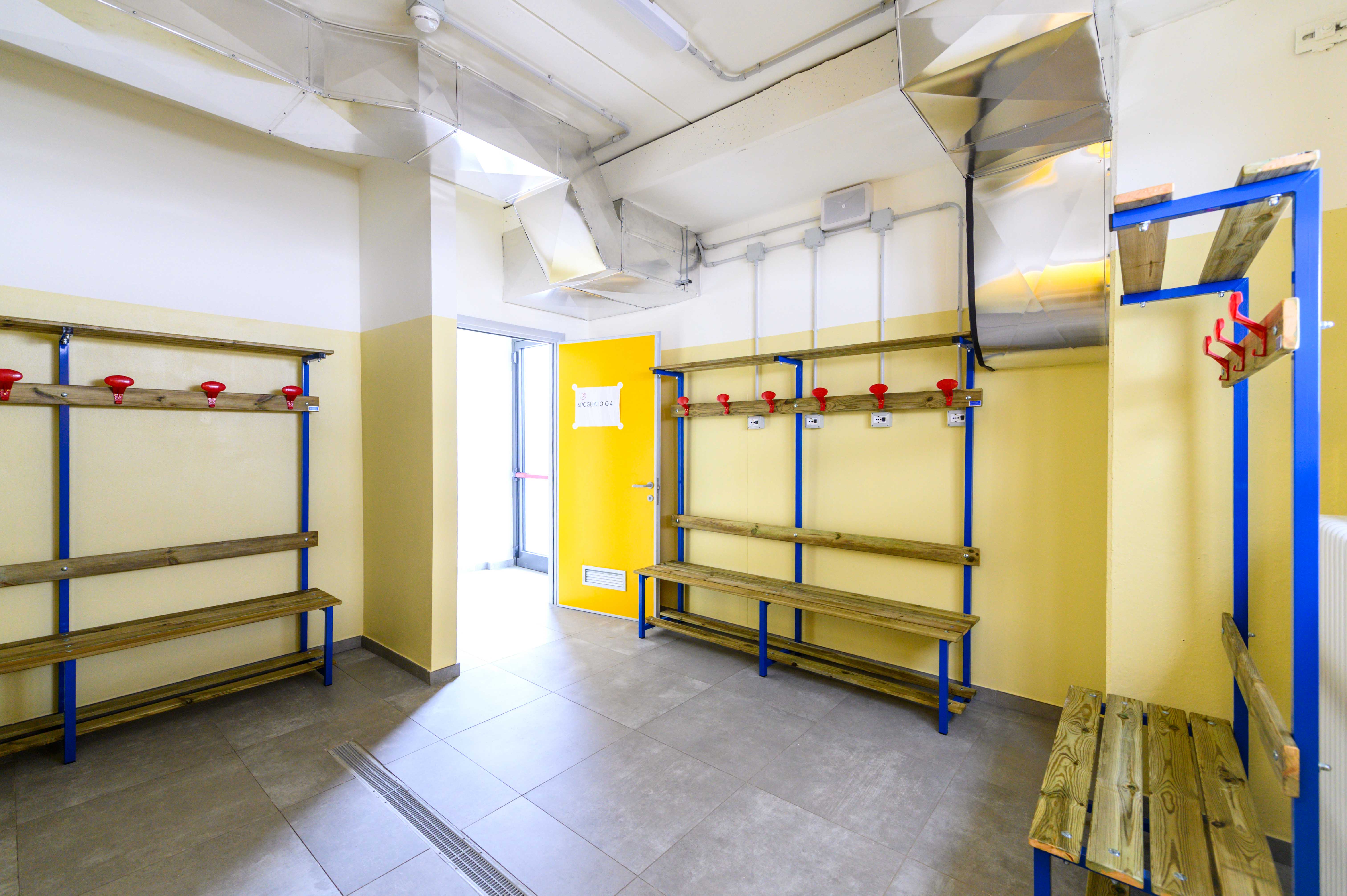L’edificio è stato pensato per accogliere la comunità sportiva nella sua interezza. Oltre alle tribune da 392 posti per il pubblico, la struttura dispone di un blocco servizi altamente organizzato, con quattro spogliatoi per atleti e atlete distribuiti su due piani, locali per arbitri e giudici di gara, un'infermeria e una sala motoria attrezzata. La gestione degli spazi interni è stata calibrata per ospitare fino a 58 tra atleti e atlete e staff, garantendo i massimi standard di sicurezza e comfort.