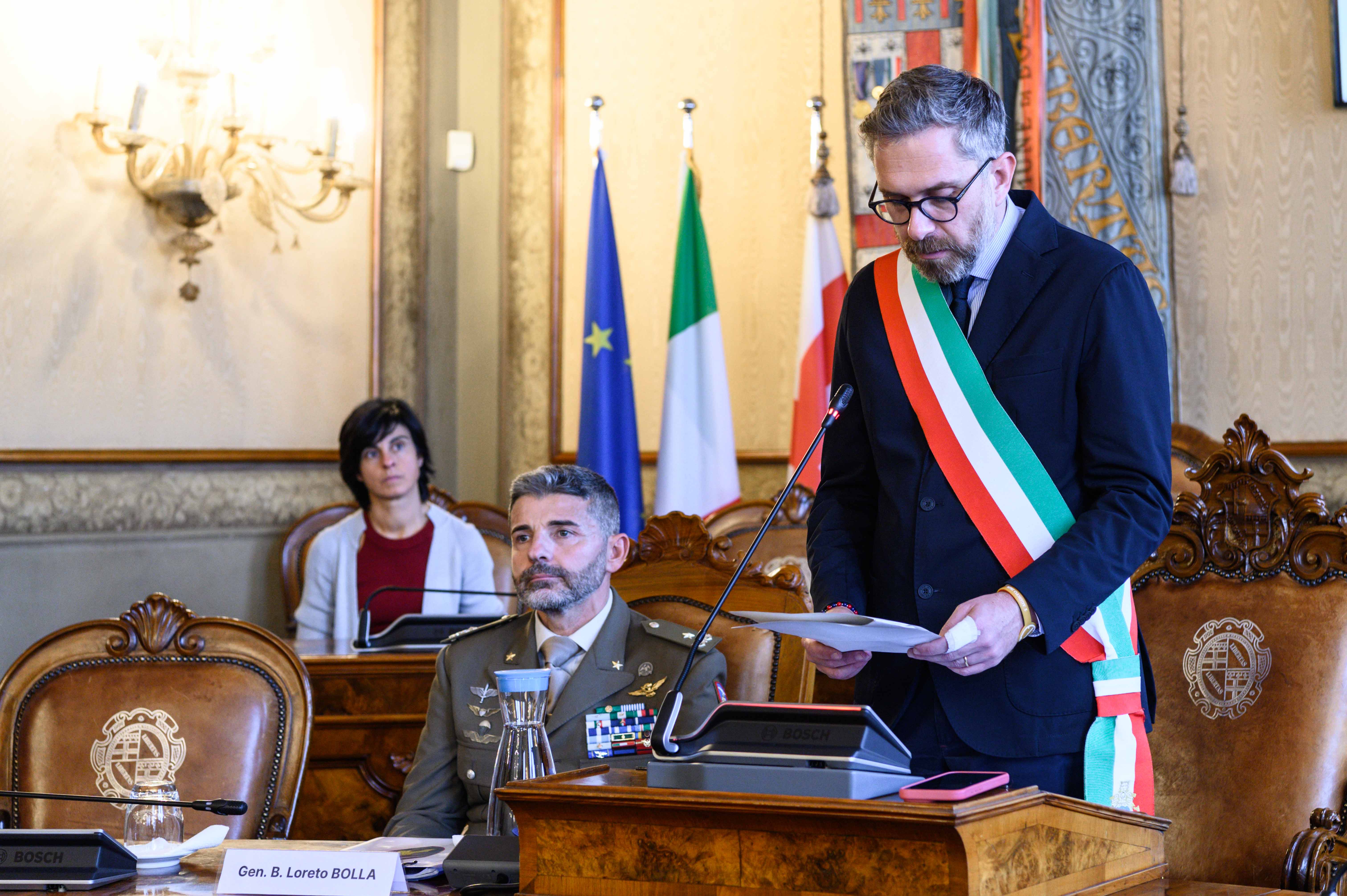 "Un benvenuto in questa aula alle autorità civili e militari, alla presidente Manca, alle consigliere e ai consiglieri, alle cittadine e ai cittadini presenti, al generale Loreto Bolla seduto qui al mio fianco, ai militari presenti in rappresentanza dei tanti che fanno parte della Brigata Aeromobile “Friuli”, a loro e alle loro famiglie il nostro saluto. Quando conferiamo la cittadinanza onoraria è un momento solenne ma è anche un momento di festa e quindi sono convinto che lo sia anche per voi.