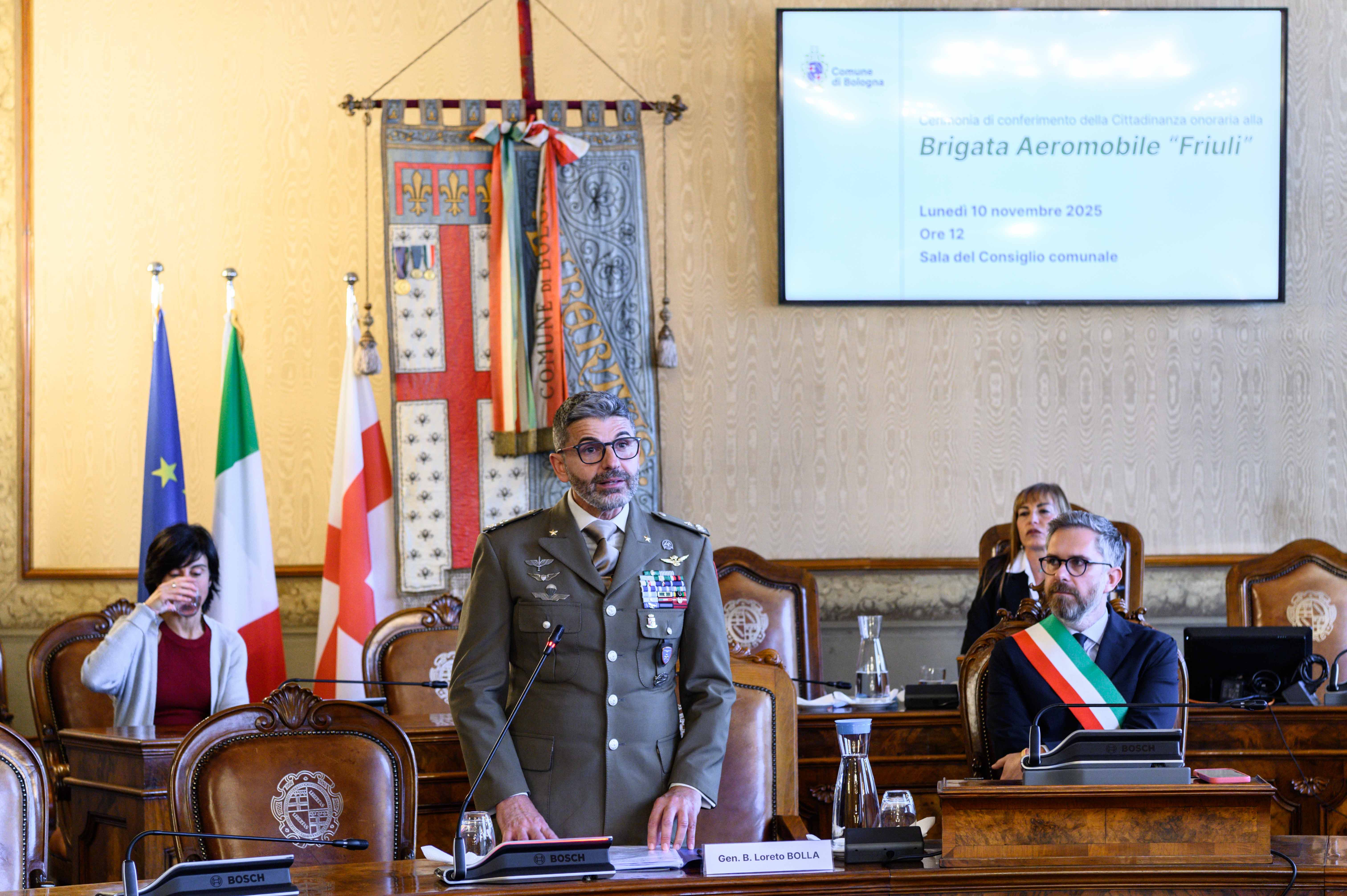 Oggi Bologna si stringe a voi in un abbraccio che attraversa il tempo. È un abbraccio che nasce dalla memoria, dalla riconoscenza e da una forte condivisione di valori. Con la cittadinanza onoraria alla Brigata “Friuli”, la nostra città dice grazie; un grazie che arriva da lontano, che parla al presente, ma che guarda anche al futuro.
