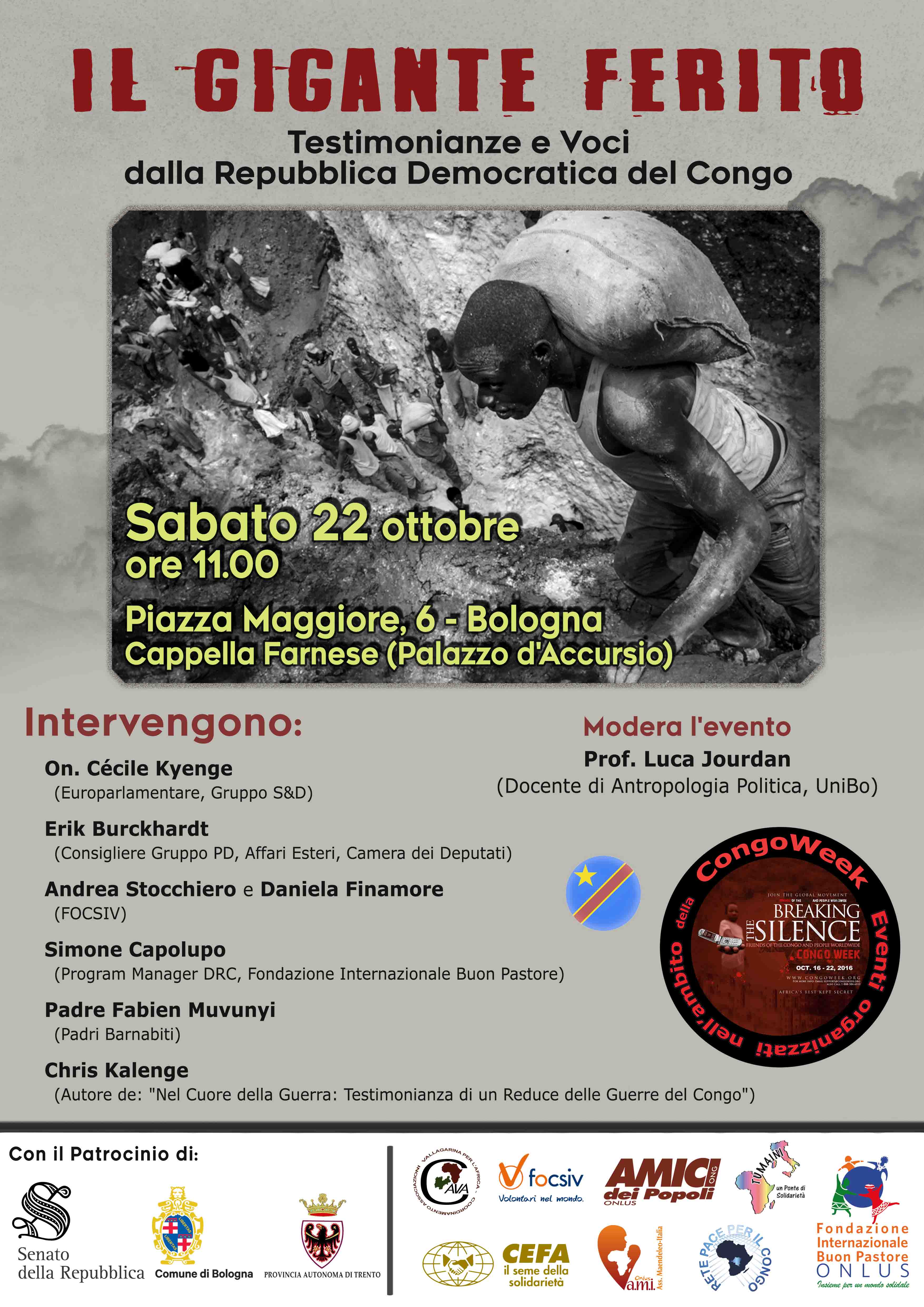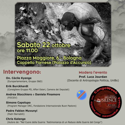 Domani, sabato 22 ottobre, alle 11, in Cappella Farnese a Palazzo d'Accursio, si terrà una conferenza nazionale dal titolo "Il gigante ferito. Testimonianze e voci dalla repubblica Democratica del Congo", nell'ambito della Congo Week.