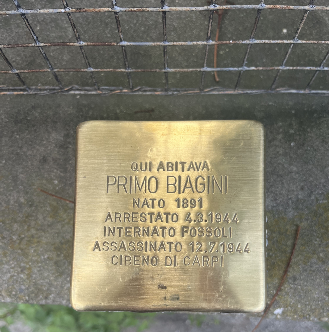 In via Francesco Rocchi è stata deposta la pietra d'inciampo dedicata a Primo Biagini. Erano presenti l’assessore Daniele Ara, il presidente del Quartiere San Donato-San Vitale Andrea Serra, la presidente della Fondazione Fossoli Manuela Ghizzoni e la classe 1B della scuola secondaria di primo grado Guido Reni.