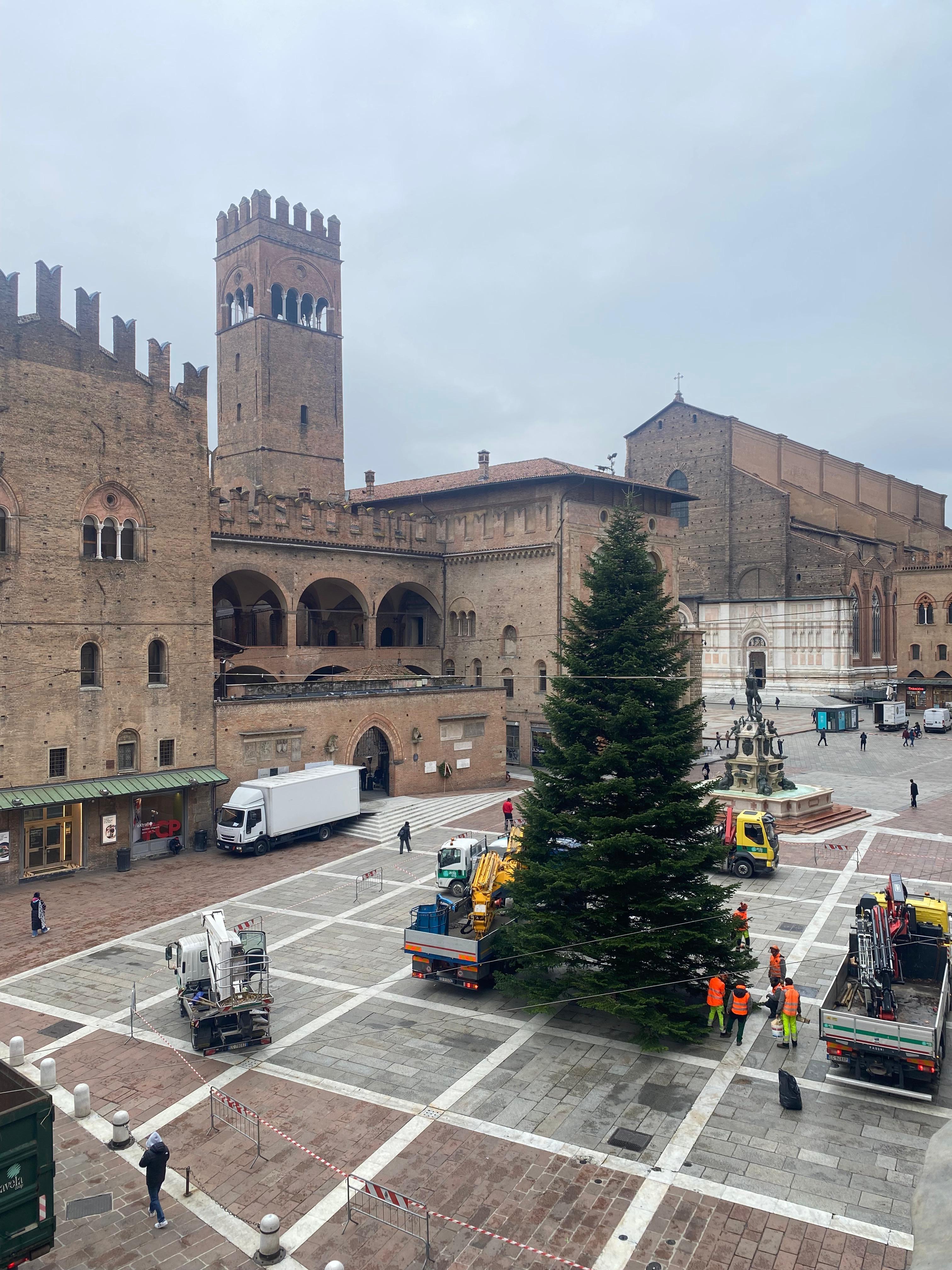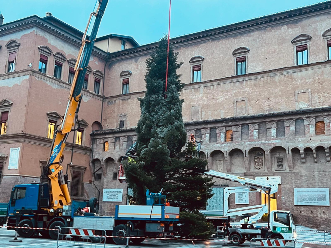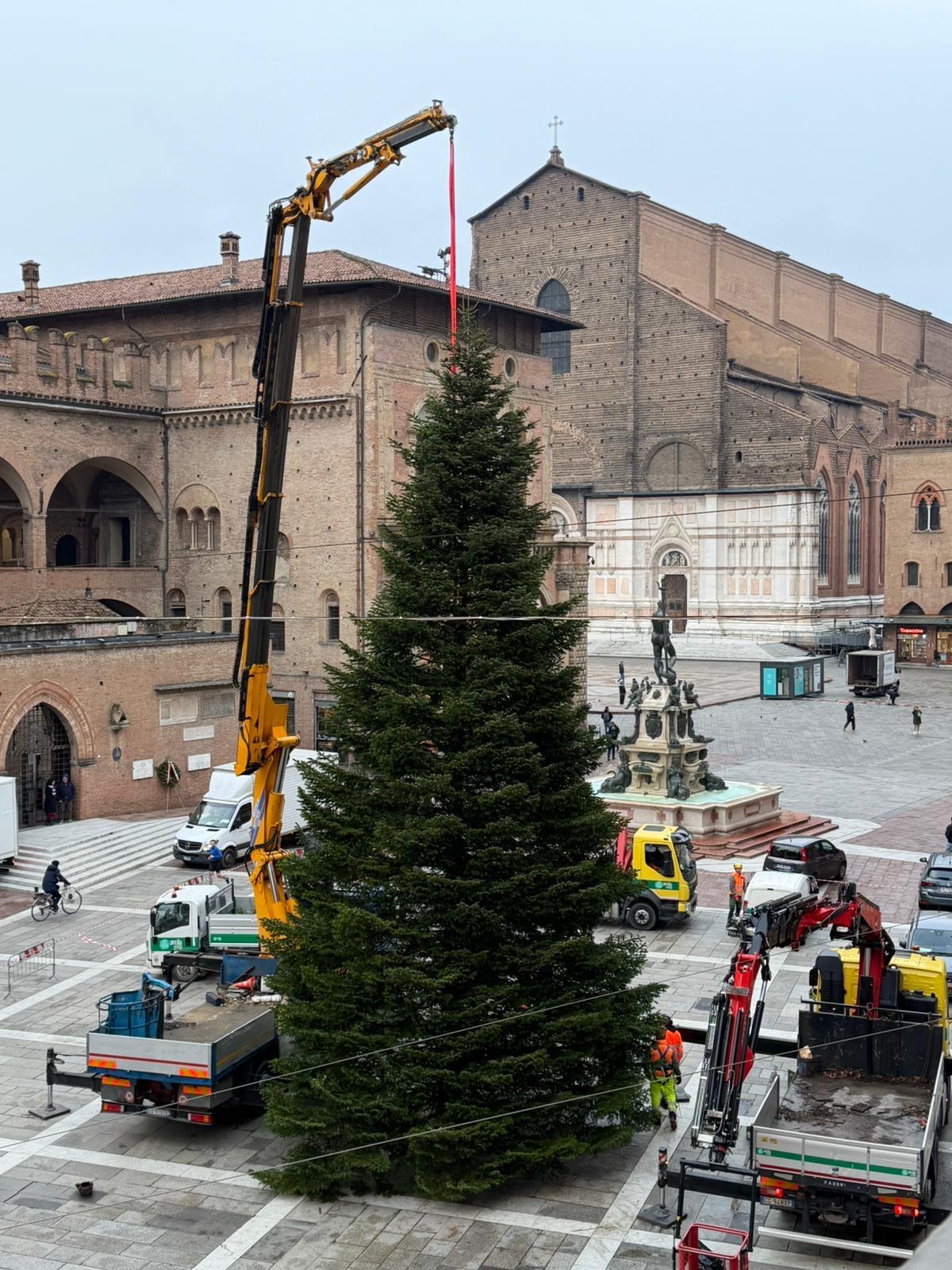 È arrivato questa mattina all’alba in piazza Nettuno l’albero di Natale, un abete bianco alto circa 20 metri, con una chioma di circa 7 metri di diametro.