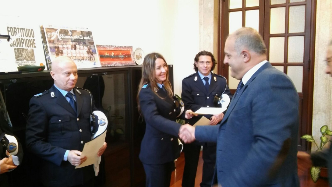 Il Comandante Mignani conferisce gli elogi a otto agenti della Polizia Municipale di Bologna