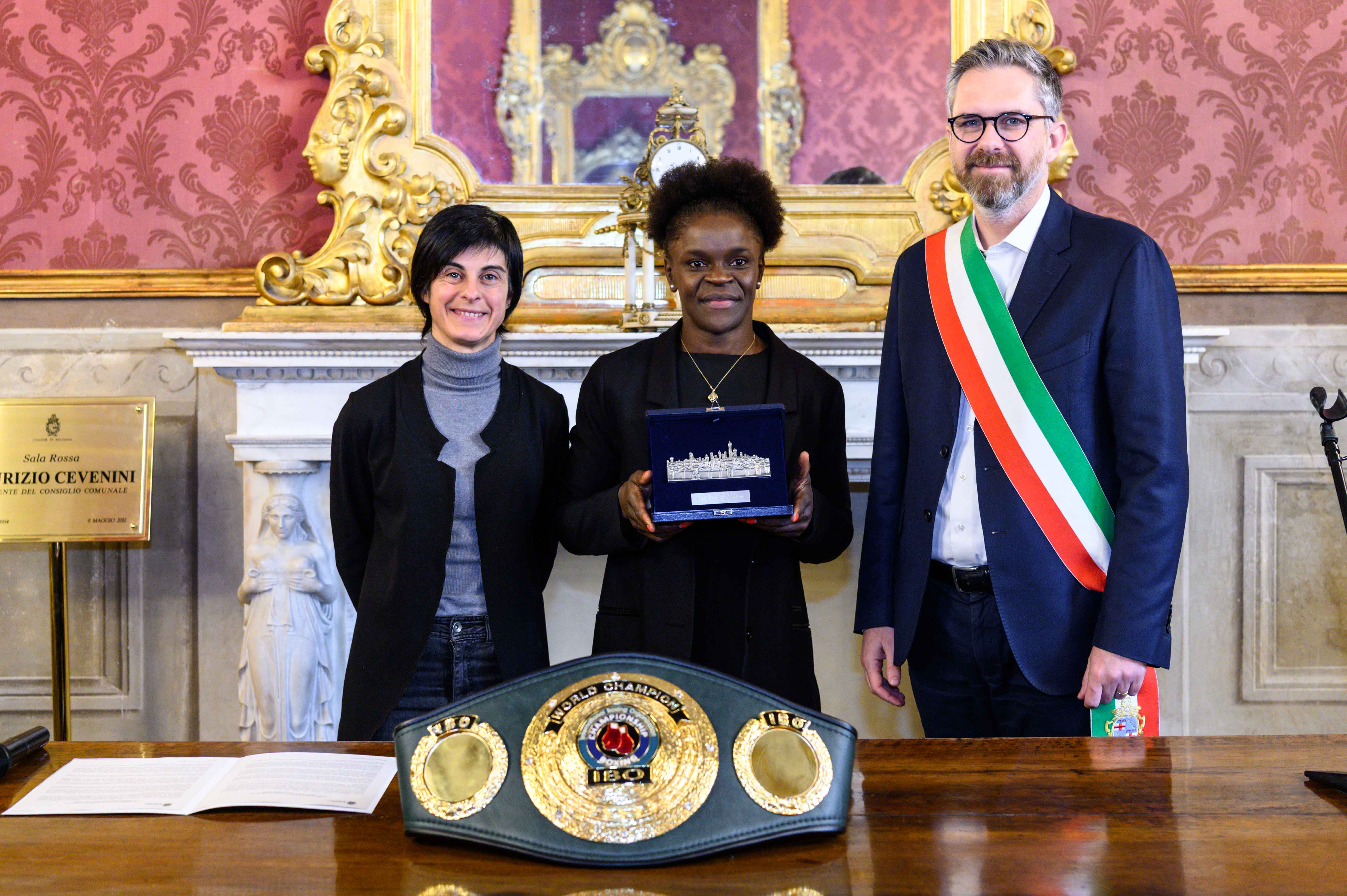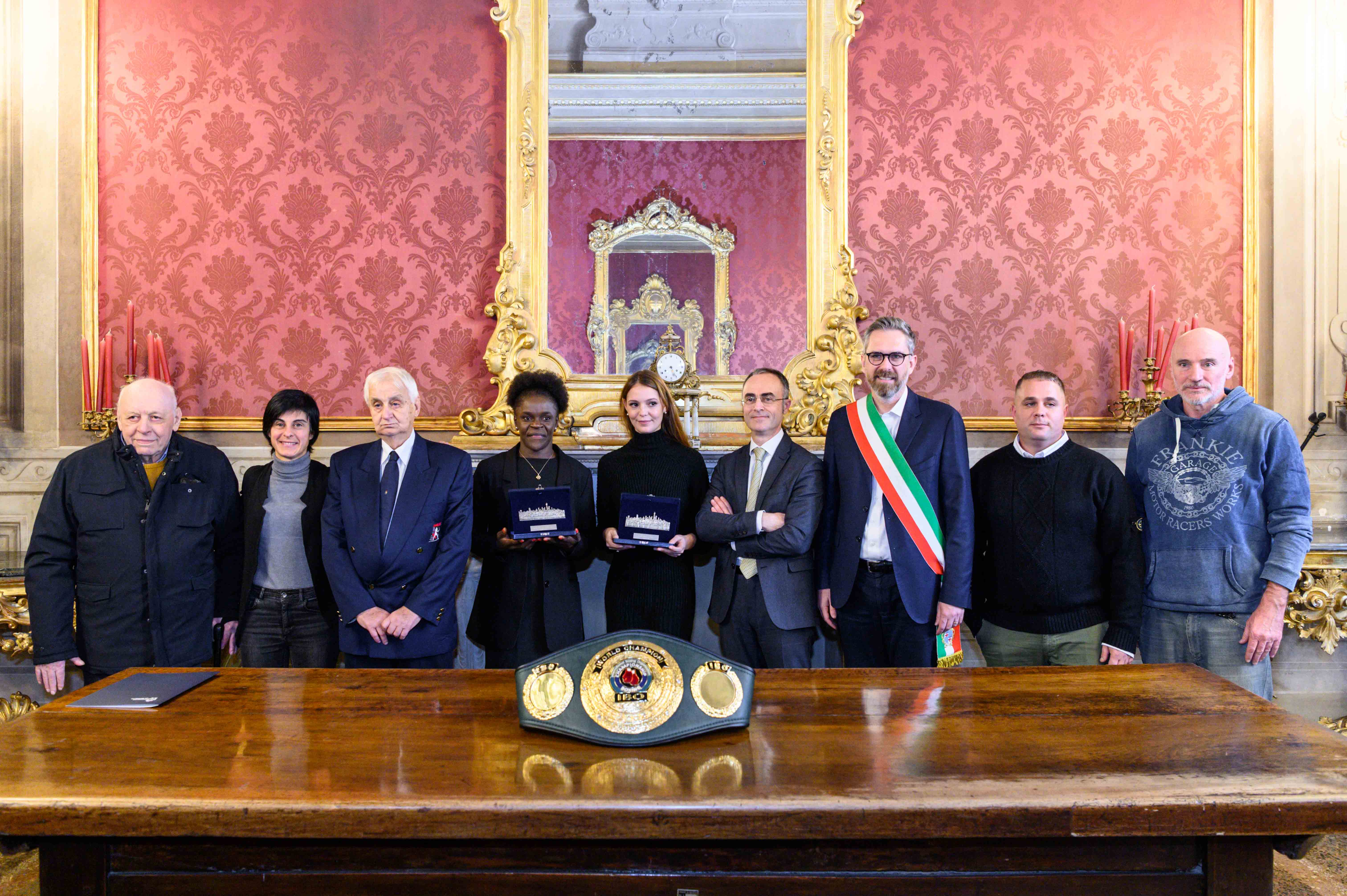 Questa mattina, il sindaco Matteo Lepore ha consegnato in sala Rossa a Palazzo d'Accursio la Turrita d'argento a Pamela Malvina Noutcho Sawa e alla Bolognina Boxe.