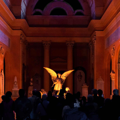 Una serata diversa all'insegna dell'arte e della gastronomia, per un'insolita e misteriosa esperienza al tramonto: si parte da Piazza Maggiore a bordo dell'Open Bus per un tour serale, con destinazione il Cimitero Monumentale della Certosa.