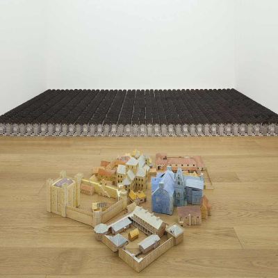 Liliana Moro, "Abbassamento", 1992, bamboline di carta e costruzioni in carta, plexiglas, dimensioni ambientali, MAMbo - Museo d'Arte Moderna di Bologna (acquisizione, 2008)