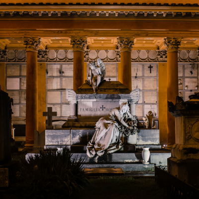 Partendo dal Chiostro VI andremo alla scoperta dei luoghi meno conosciuti e frequentati tra gallerie, sotterranei e angoli suggestivi: il biancore del marmo, la ricchezza del bronzo, il colore del mosaico. Un percorso alla scoperta del Cimitero Monumentale più insolito.
