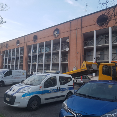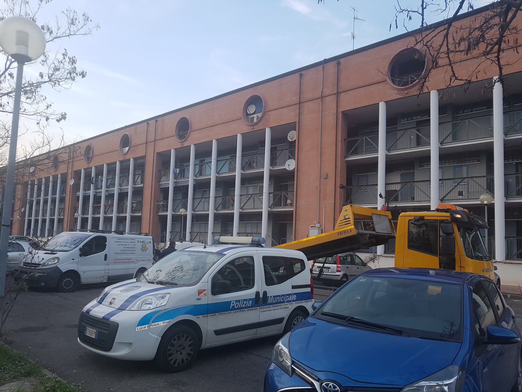 La Polizia Municipale nell'area di sosta di via della Beverara