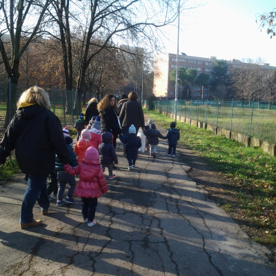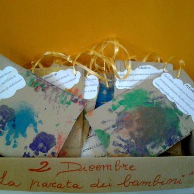 Una ventina di bambini di due anni del nido Roselle, accompagnati dalle educatrici, hanno attraversato i parchi cittadini Antonio Ivan Pini e Vittime della Uno Bianca fino ad arrivare alle vicine scuole don Marella. I bambini del nido hanno portato in dono agli alunni delle scuole d'infanzia e primaria alcuni cartelli, disegnati con le impronte colorate delle loro mani e decorati con vignette riportanti gli articoli della Carta dei diritti del fanciullo ONU. Hanno inoltre regalato alle scuole un calendario con i Diritti Naturali di Bimbe e Bimbi illustrato dallo storico maestro e dirigente scolastico romagnolo Gianfranco Zavalloni.