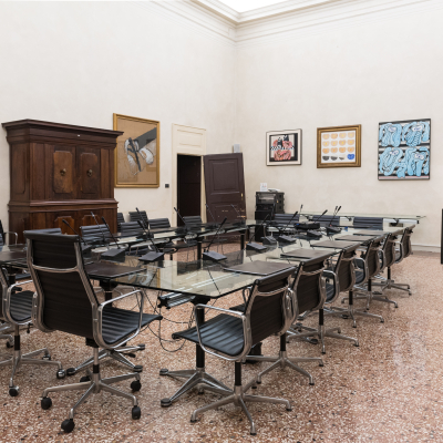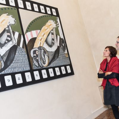 La Sala di Giunta di Palazzo d'Accursio da oggi si arricchisce con cinque opere di Concetto Pozzati. Il Sindaco di Bologna Virginio Merola ha deciso così di rendere omaggio all'artista, maestro e amministratore appassionato, scomparso lo scorso 1 agosto. Questa mattina il Sindaco ha invitato Maura Pozzati, figlia dell'artista, a visitare la nuova veste della Sala di Giunta.