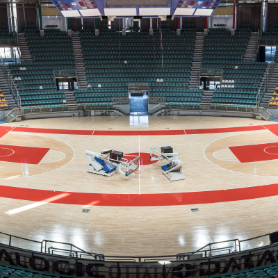 Proseguono i lavori di restyling del PalaDozza. Da oggi il Palazzo dello Sport di Bologna ha un nuovo parquet, realizzato per ospitare partite di basket, eventi sportivi, culturali e manifestazioni. Nei giorni scorsi è stato tolto il vecchio campo da gioco, ormai degradato e usurato, non più riparabile e sostituito con un parquet di tipo fisso, con apposito sistema di copertura. Il parquet fisso permette di non avere costi di smontaggio e conseguente rimontaggio e ne evita l’usura rispetto a questo tipo di operazioni. La superficie del parquet adesso è maggiore, ricopre l’intero ovale del PalaDozza, questo permette di poter ospitare qualsiasi disciplina sportiva, soprattutto quelle che necessitano spazi maggiori rispetto al basket, anche a livello internazionale. Il parquet appena installato, adeguatamente coperto, consente di supportare carichi maggiori rispetto a quello precedente, permettendo dunque il montaggio di qualsiasi tipo di palco.