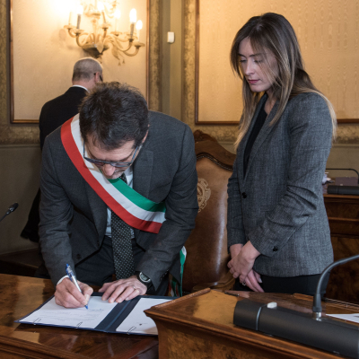 Il Sindaco Virginio Merola ha firmato questa mattina con la sottosegretaria alla Presidenza del Consiglio dei Ministri Maria Elena Boschi la convenzione per il ‘Piano nazionale per la riqualificazione sociale e culturale delle aree urbane degradate’. La cerimonia si è svolta nella sala del Consiglio Comunale di Palazzo d’Accursio dove 71 Sindaci da tutta Italia sono arrivati per firmare le rispettive convenzioni per i propri Comuni.