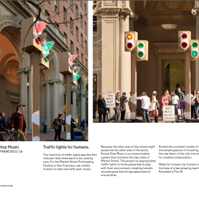Presentato durante il 2015 Market Street Prototyping Festival di San Francisco, Knock Stop Music cerca di raggiungere gli sconosciuti e di farli interagire l'uno con l'altro: ogni semaforo è dotato di un'interfaccia che, una volta attivata, invia un segnale luminoso e sonoro all'altro lato della strada. Le persone sull'altro lato possono rispondere creando melodie.