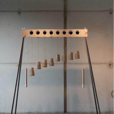Il carillon diatonico è un vero strumento che amplifica naturalmente il suono delle otto campane che offrono una giocosa e sorprendente esperienza che esplora le relazioni tra suono e materia.