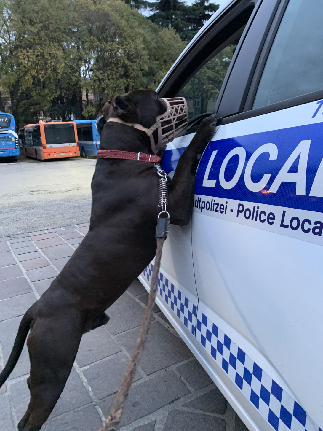 Era legato ad un arbusto con un guinzaglio e la museruola, infreddolito, bagnato e tremante. È la scena in cui si sono imbattuti gli agenti del reparto Navile della Polizia Locale domenica scorsa, sulla Rampa Maggiore Leopoldo Serra (parte retrostante del parco della Montagnola), inviati sul posto a seguito di una segnalazione. In una parte nascosta della vegetazione, gli operatori hanno individuato un cane meticcio tipo pitbull di colore marrone, di  taglia media, e che guaiva. Il cane, con le orecchie tagliate, è apparso denutrito e assetato e dava segno di essere infastidito dalla museruola che cercava di togliere strofinando il muso per terra. Gli agenti, con l’ausilio della Centrale Radio Operativa, hanno subito allertato il canile per il recupero. Nel frattempo, il cane è stato slegato dal guinzaglio che non gli permetteva movimenti fluidi, in considerazione della lunghezza del collare tenuto corto e stretto. Liberato anche dalla museruola, il pitbull è stato in grado di bere l'acqua che gli agenti si erano procurati. Il personale del canile, arrivato sul posto, dopo aver provato a leggere il microchip, senza esito, ha preso in carico il cane.