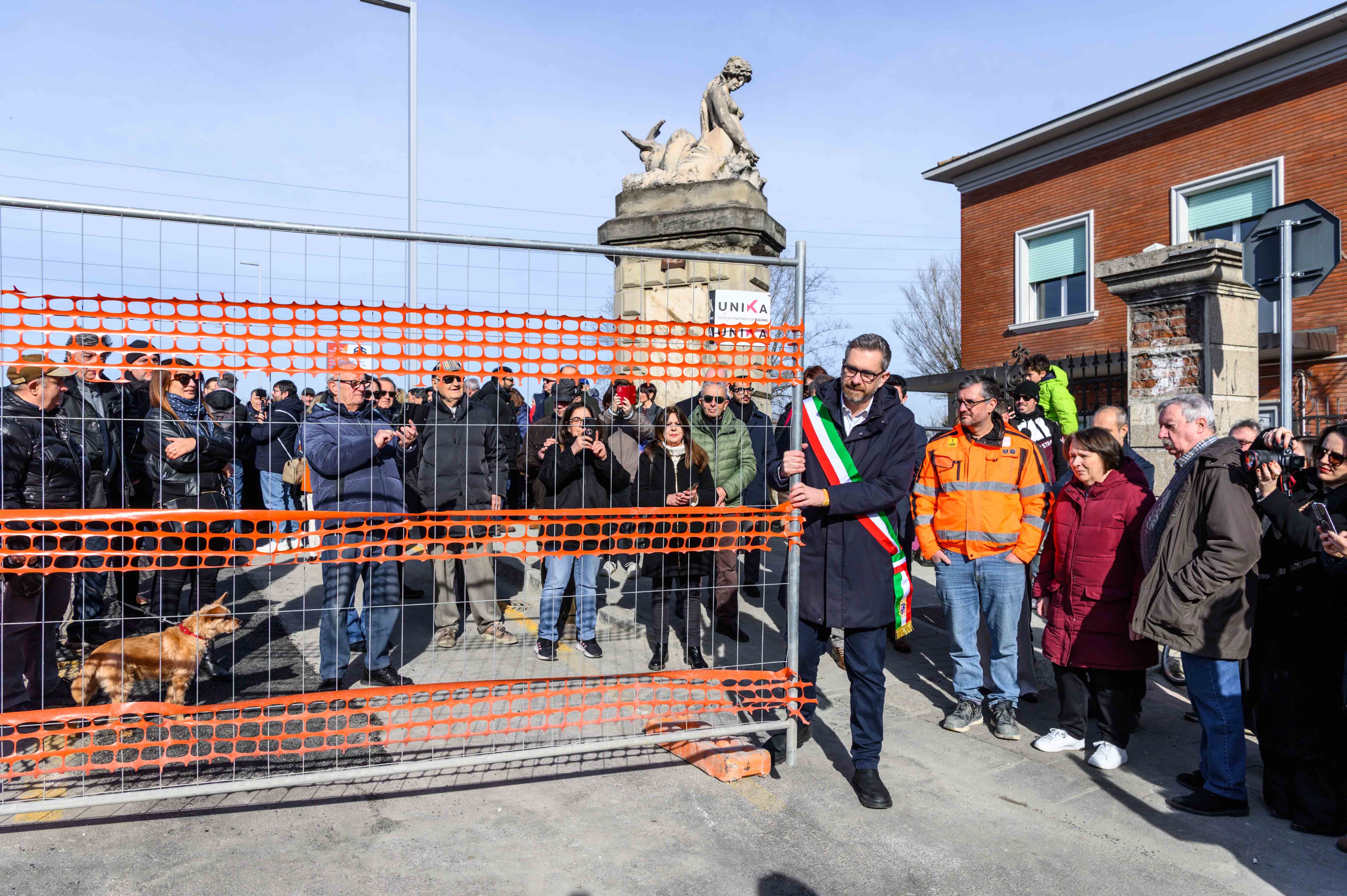 Poco più avanti è inoltre in fase di completamento la posa delle rotaie nella nuova rotatoria all’incrocio con via Battindarno.