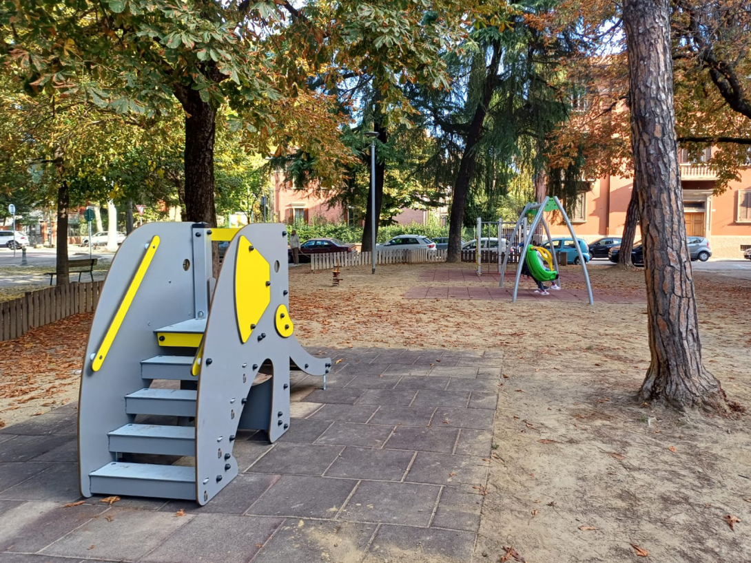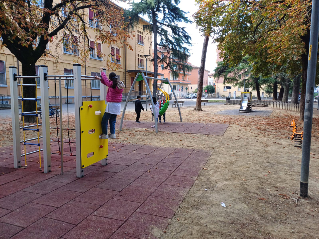 E’ aperta da ieri pomeriggio la nuova area giochi nel giardino Montessori davanti alle scuole Marconi in via Laura Bassi, nel quartiere Santo Stefano.