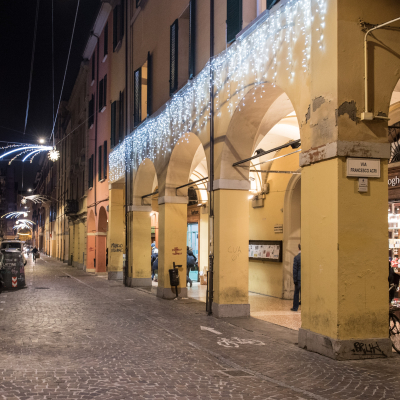 Quest'anno le luminarie natalizie splendono anche in via Petroni e in Piazza Verdi, un “traguardo simbolico molto importante, frutto della buona pratica di lavorare insieme”, afferma l'assessore all'economia e alla promozione della città, Matteo Lepore. Le luminarie sono il risultato di una sottoscrizione avviata dalla Fondazione Rusconi e dal Comune di Bologna con gli operatori commerciali, insieme ad Ascom, residenti e associazioni della zona universitaria. “Siamo molto contenti per l'altissima adesione degli operatori commerciali della zona – conclude l'assessore Lepore –. Desidero ringraziare a nome dell'Amministrazione tutti coloro che hanno reso possibile questo risultato: il Quartiere Santo Stefano con la sua presidente, Rosa Amorevole, la Fondazione Rusconi, l'Ascom, i commercianti e i residenti della zona”. Dopo via Petroni e Piazza Verdi, le luminarie saranno allestite anche in Piazza Aldrovandi, dove si stanno ancora raccogliendo le adesioni.