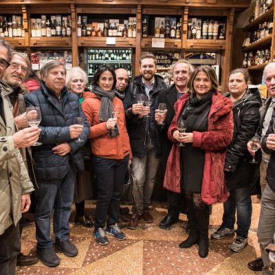 Le luminarie in via Petroni e Piazza Verdi - Brindisi inaugurale con l'assessore Matteo Lepore