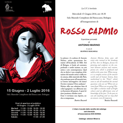 Mercoledì 15 giugno alle 18,30, nella sala museale del Baraccano in via Santo Stefano 119, sarà inaugurata la mostra “Rosso Cadmio”, personale di pittura e scultura di Antonio Marino, a cura di Beatrice Buscaroli, con il pat...