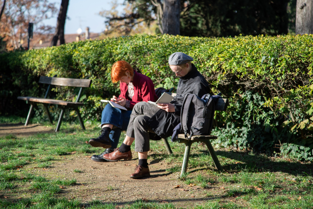 Il primo appuntamento in programma è un workshop internazionale all'interno del programma Erasmus + con gli studenti partecipanti al progetto BIP (Blended Intensive Programmes) provenienti da PXL-MAD School of Arts di Hasselt, VDA Vilniaus dailés akademija di Vilnius e Accademia di Belle Arti di Bologna. Il progetto A Dialogue Across Times and Landscapes. Sotto/Sopra ha previsto un’esplorazione del territorio urbano – dai portici di San Luca al centro città, dalla Chiusa di Casalecchio ai canali sotterranei – e un laboratorio di illustrazione negli spazi di Villa delle Rose, dove le opere realizzate saranno restituite al pubblico in una mostra aperta dal 7 al 9 novembre 2025 (dalle 13 alle 19), a cura di Sara Colaone e Mario Rivelli, docenti del Corso di Fumetto e illustrazione dell’Accademia di Bologna. Dal 12 al 29 novembre, l’esposizione sarà riallestita negli spazi dell’Accademia nell’ambito del festival A occhi aperti.